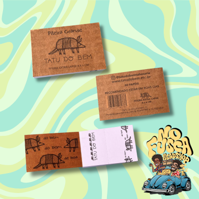 Com 6 cm de comprimento, 4 cm de largura e 50 folhas por bloco, ela é ideal pra quem gosta de enrolar com classe e praticidade. E claro, com aquele design artístico que é a marca registrada da Tatu do Bem. 🌀